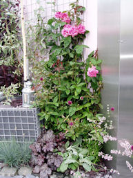 About the garden: The triquetra, a Celtic knot pattern symbolising the three planes of existence; physical, mental and spiritual, was the inspiration behind the garden. The theme was reflected in other aspects of the garden: three seats, three elements (metal, stone, water), three colour groupings (white/silver/grey, pink/purple/plum, charcoal/black).