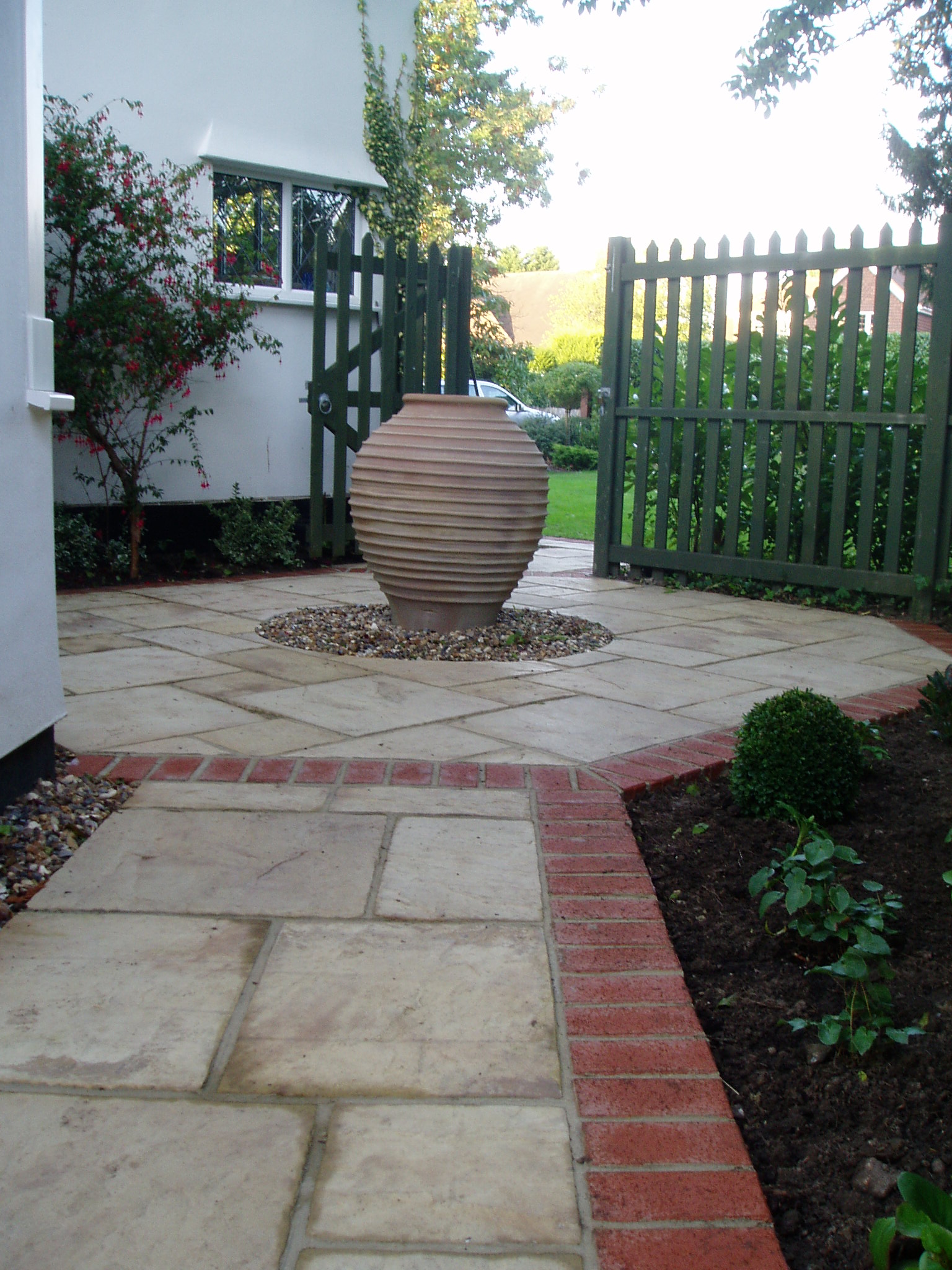 After: view to gateway – the urn is now the focal point in what was a dark dingy corner